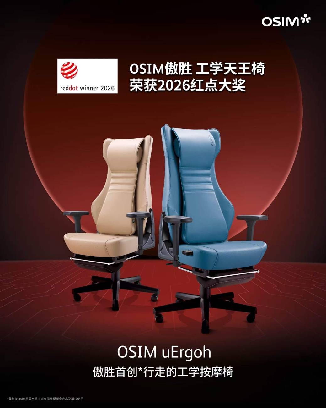 与旗舰款uDream AI(AI 5感养身椅)交相辉映,uErgoh工学天王椅也凭借出色的人机工学设计与卓越的用户体验,荣膺2026红点大奖。从高端旗舰到入门首选,OSIM傲胜以双红点阵容证明了设计实力不分价位,好科技理应人人可享。